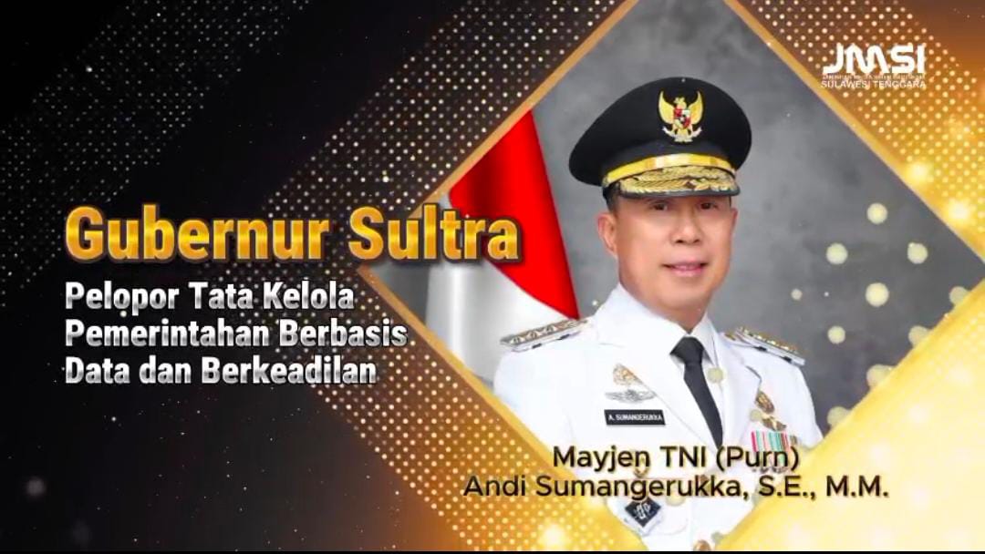 KENDARI |taranews.id– Gubernur Sulawesi Tenggara (Sultra), Mayjen TNI (Purn) Andi Sumangerukka, menerima JMSI Sultra Award atas kontribusinya sebagai tokoh pelopor tata kelola pemerintahan berbasis data dan berkeadilan. Penghargaan tersebut diserahkan di Kantor Gubernur Sultra, Kendari pada Rabu 31 Desember 2025.